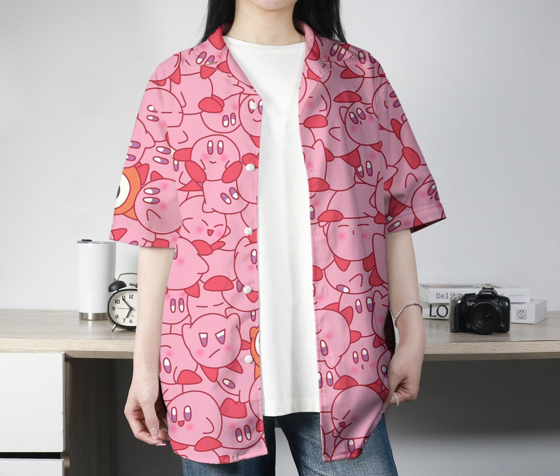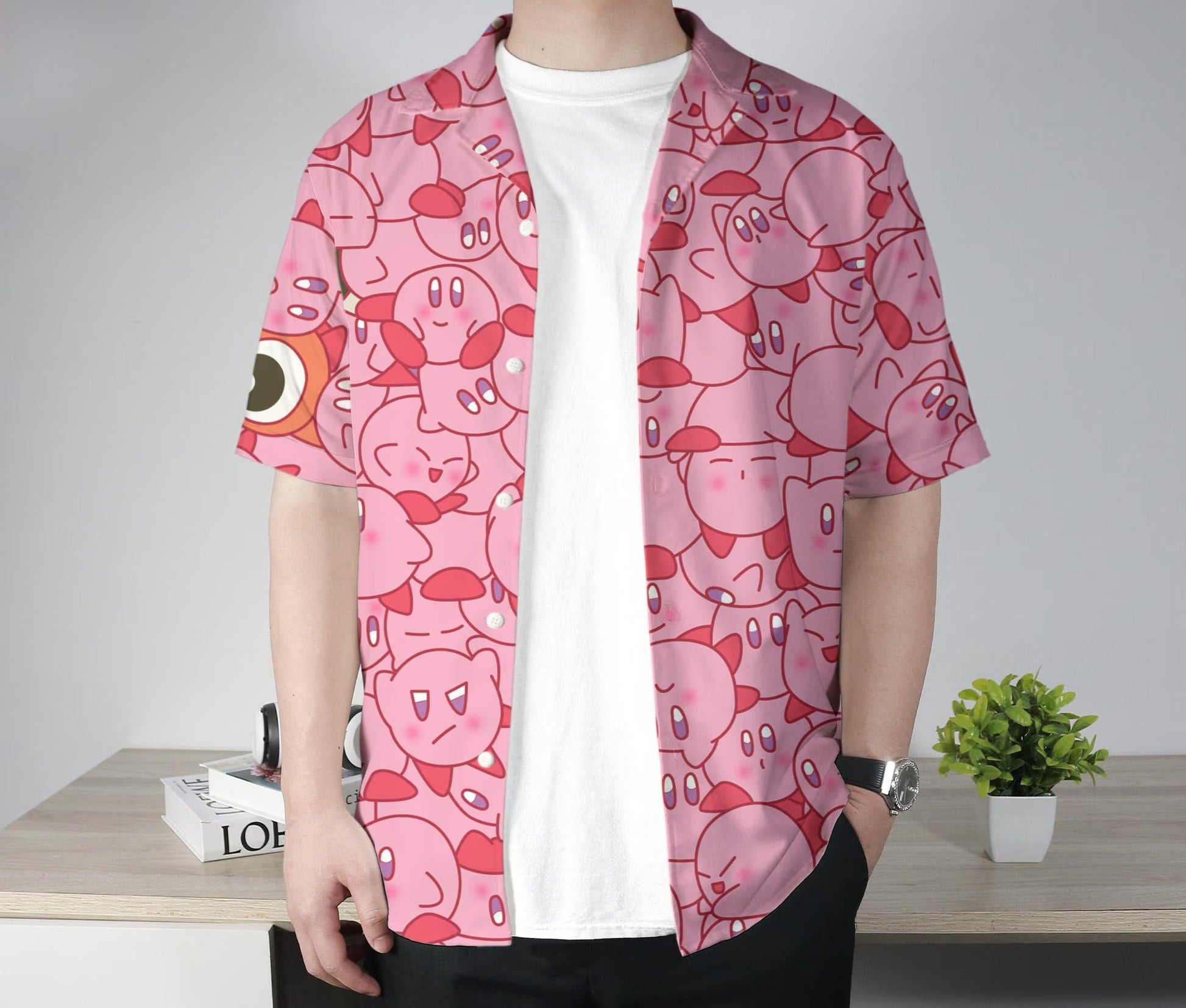 Kirby Hawaiian Shirt Tropical Button Up Shirt Summer Hawaiian Short Tropical Hawaii Set Kirby Shirt Gifts