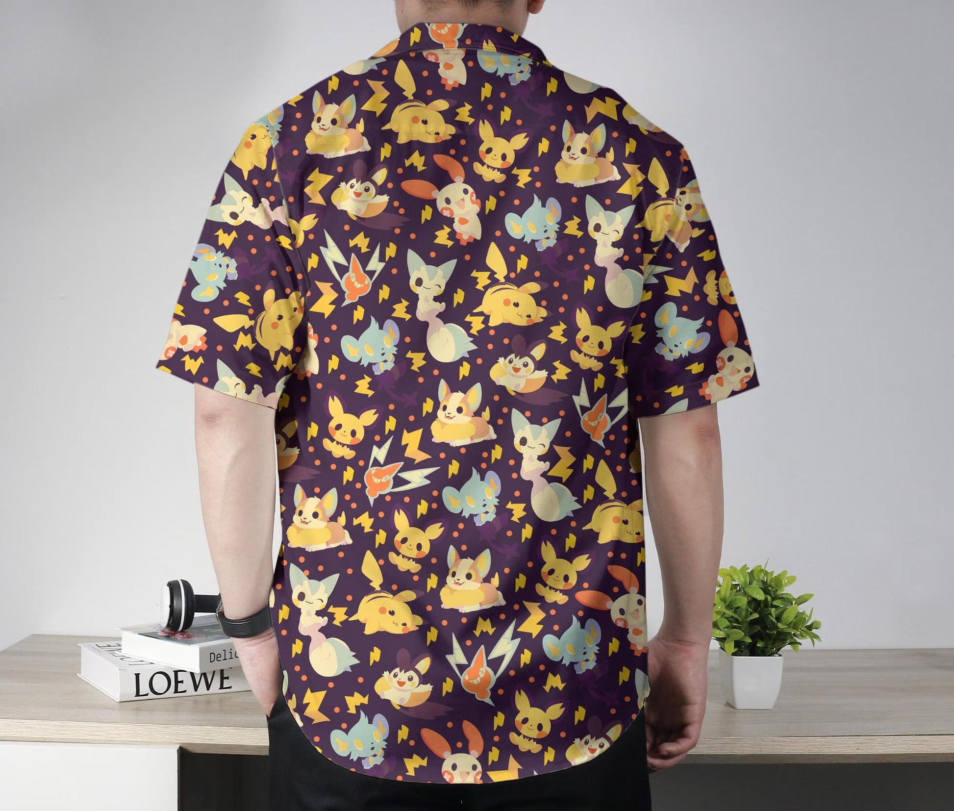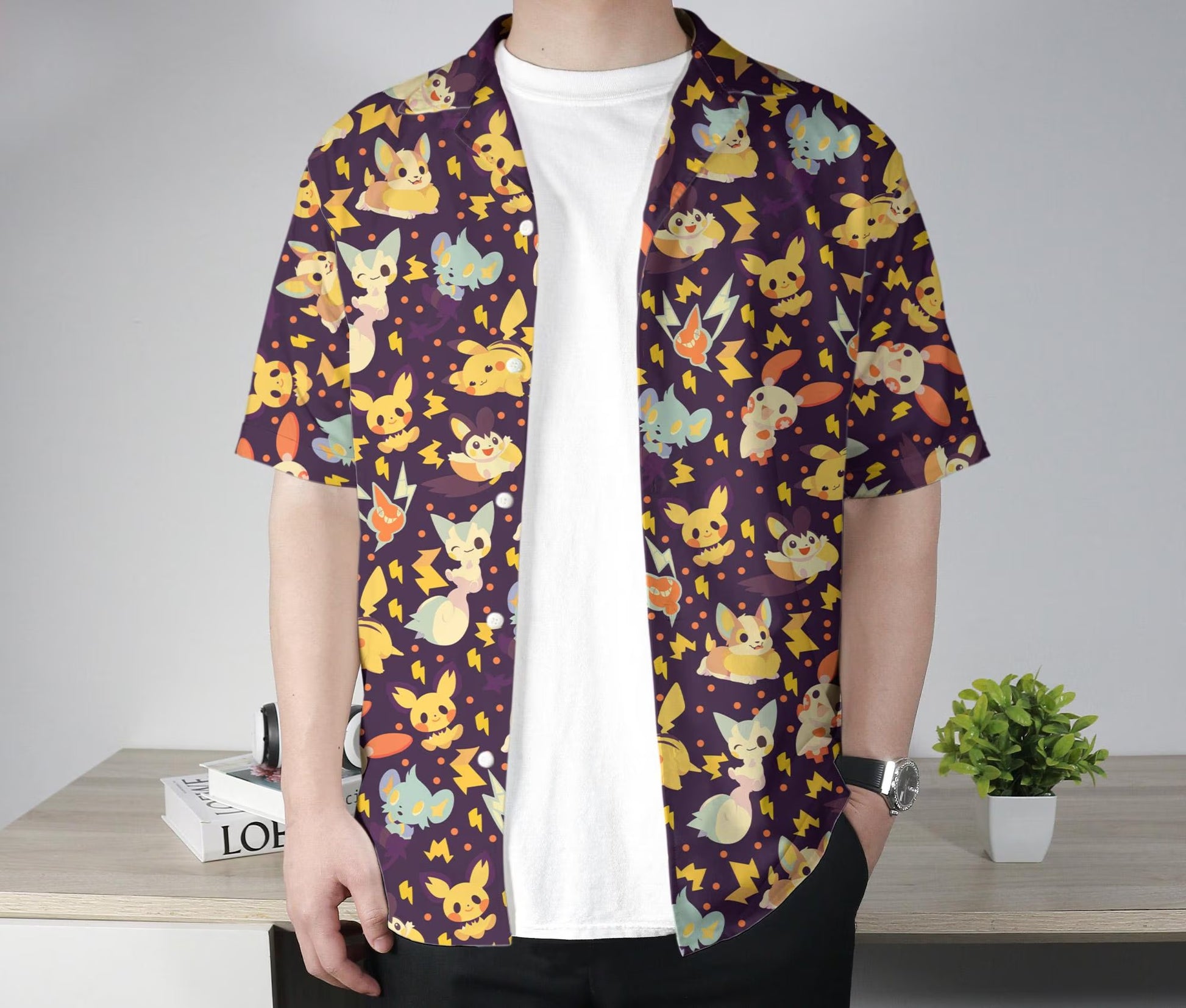 Pikachu Hawaiian Shirt Tropical Button Up Shirt Chibi Summer Pachirisu Hawaiian Shirt Tropical Hawaii Set Pikachu Shirt Gifts