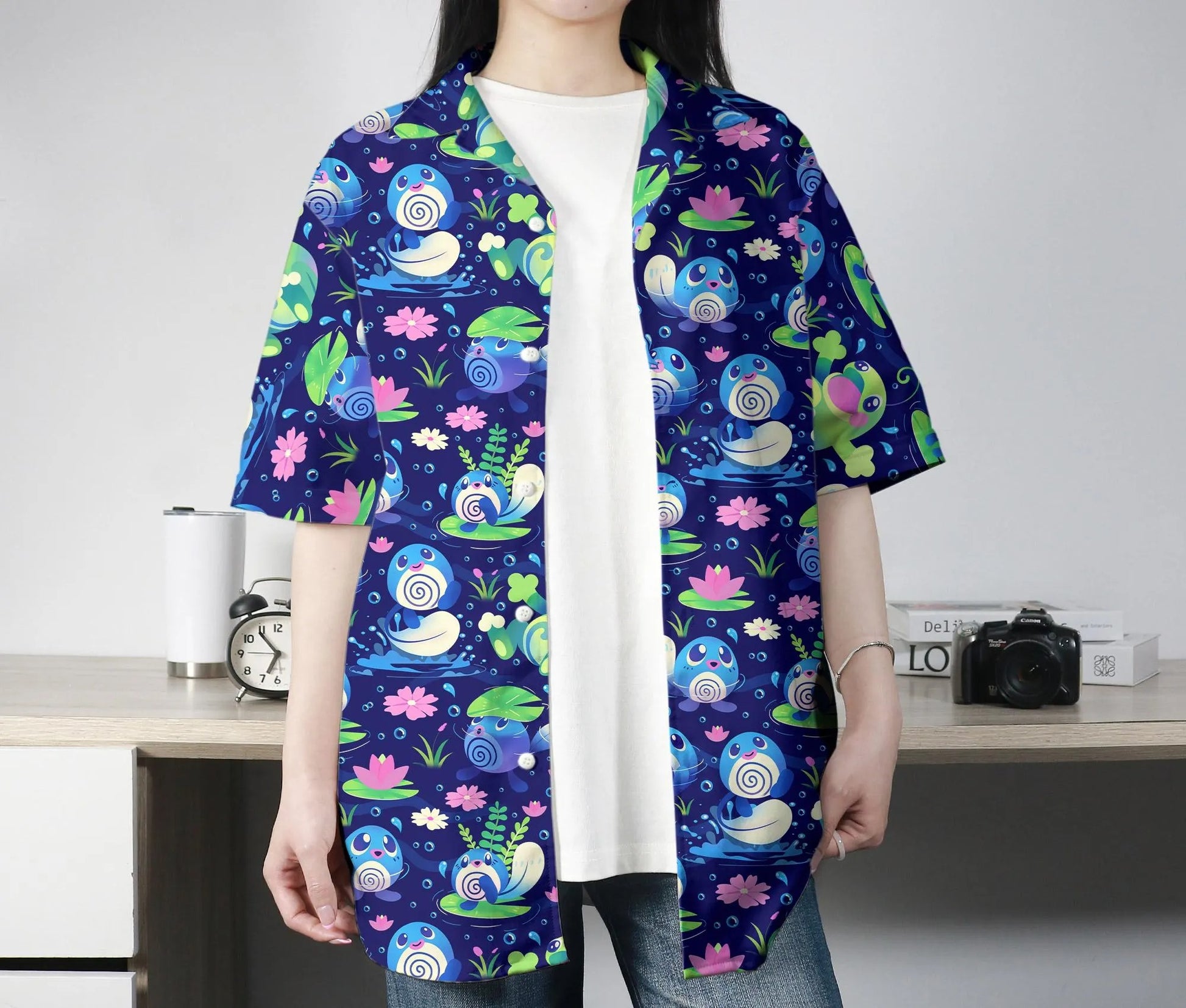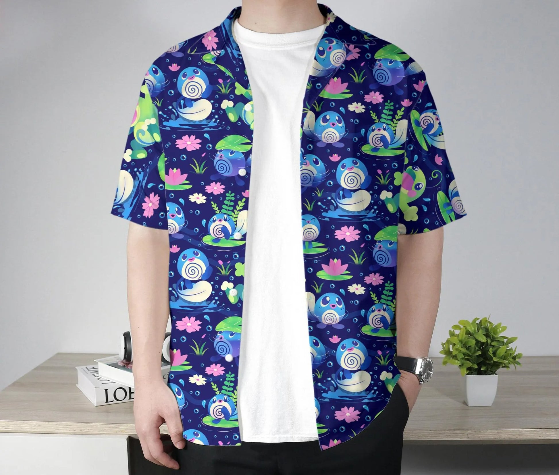 Poliwag Hawaiian Shirt Tropical Button Up Shirt Cute Politoed Hawaii Shirt Summer Hawaiian Short Tropical Hawaii Set Poliwag Shirt Gifts