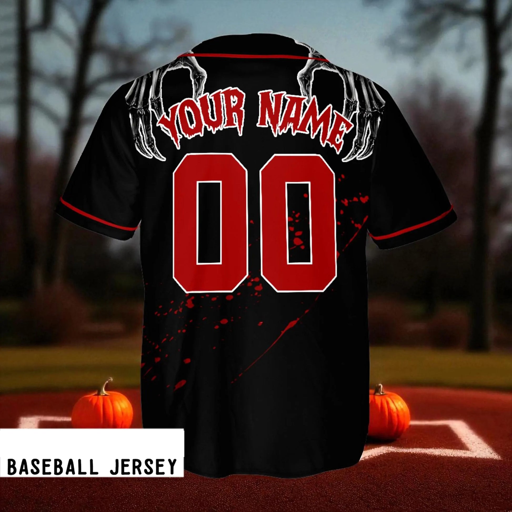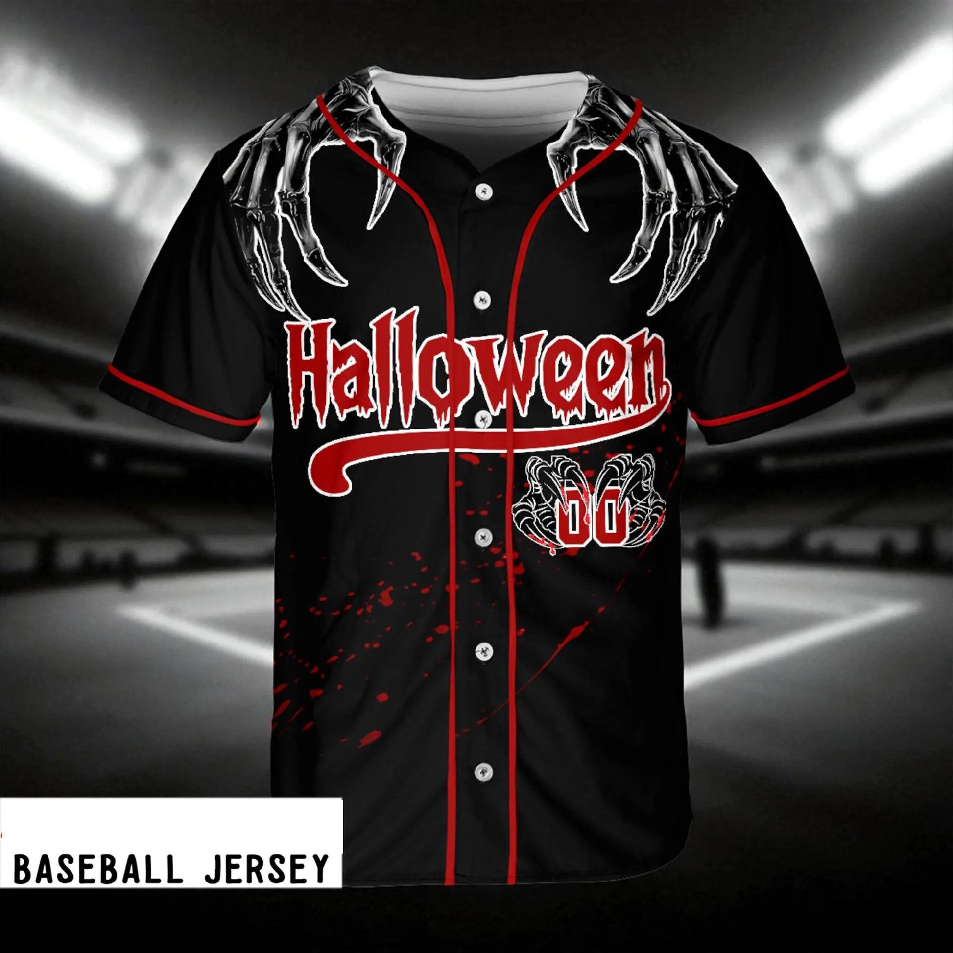Skeleton Hand Halloween Baseball Jersey, Custom Name Number Bloody Red Black Jersey, Spooky Horror Costume Shirt,Halloween Jersey Shirt
